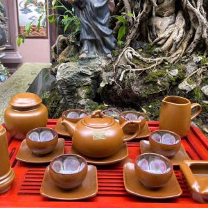 Bộ trà men hoả biến Tone cam – Nghệ nhân Tô Thanh Sơn