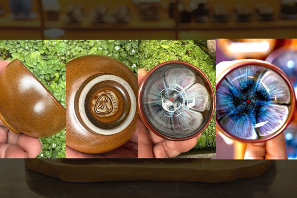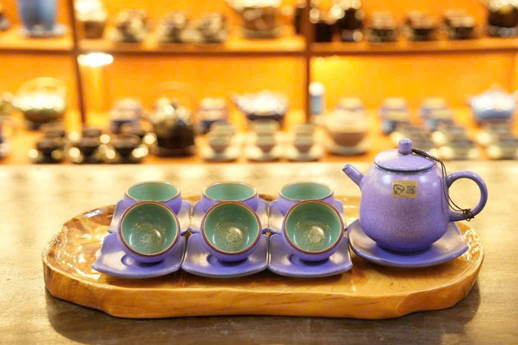 Mỗi chén trà khi rót nước nóng, hiệu ứng men lập tức xuất hiện với sắc xanh – tím – lam bung nở như hoa văn thiên nhiên, hoàn toàn không thể lặp lại ở bất kỳ sản phẩm nào khác.